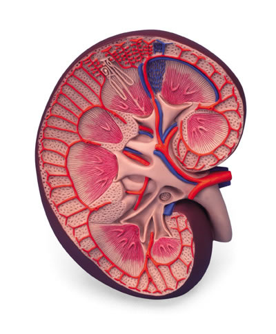 右腎的縱切面,展示了所有的重要結(jié)構(gòu)。